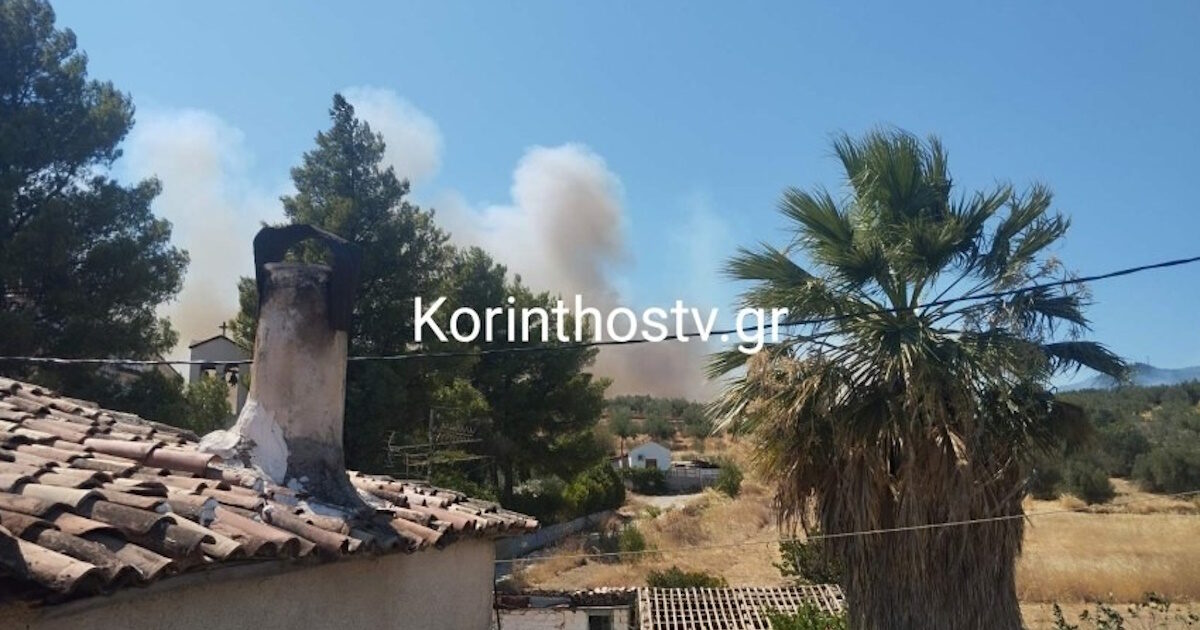 Η φωτιά καίει δάσος στην περιοχή της Αρχαίας Νεμέας, ενώ βρίσκεται αρκετά κοντά σε σπίτια στην περιοχή.