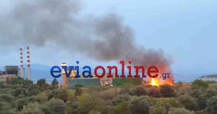 Φωτιά στην Εύβοια δίπλα από το εργοστάσιο της ΔΕΗ στο Αλιβέρι