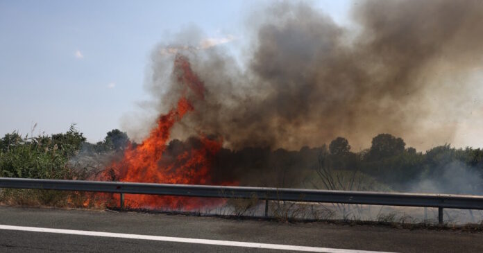 Πυρκαγιά στην Αλεξάνδρεια Ημαθίας, παραπλεύρως της Εγνατίας Οδού, Πέμπτη 17 Ιουλίου 2025.