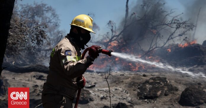 Επίγειες και εναέριες δυνάμεις της Πυροσβεστικής επιχειρούν για την κατάσβεση πυρκαγιάς που ξέσπασε σε χορτολιβαδική έκταση στην περιοχή Μεταξάτα Κεφαλονιάς.