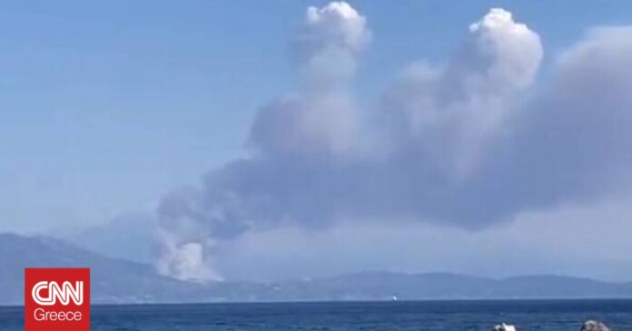 Μέχρι το Μεσολόγγι έφθασαν πυκνοί καπνοί από τη μεγάλη πυρκαγιά στην Καλλιθέα Πάτρας.