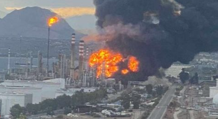 Αυτή την ώρα επιχειρούν και πυροσβεστικά των διυλιστηρίων.
