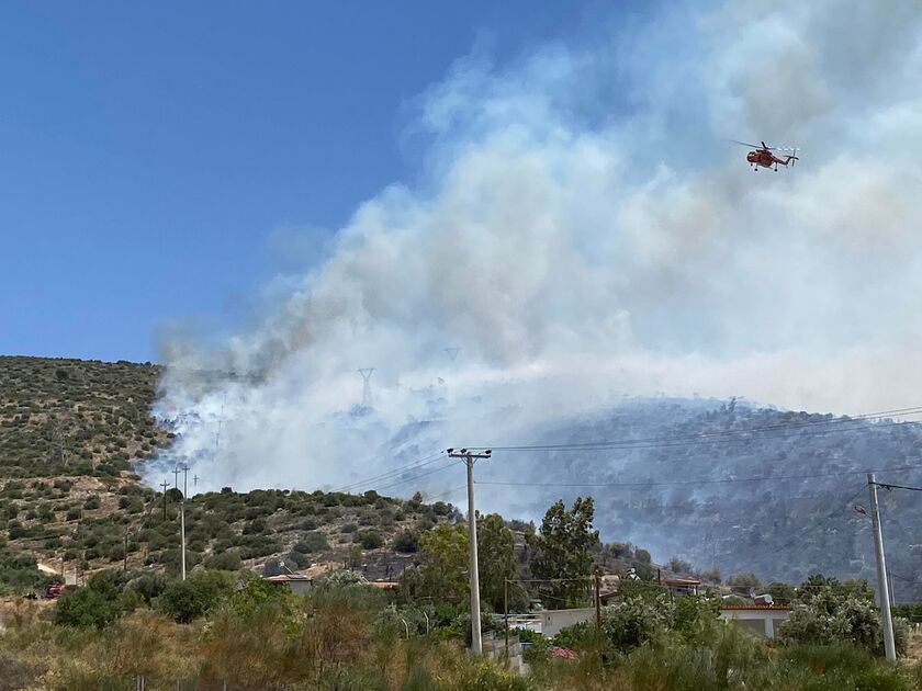 Παράλληλα, απο αέρος επιχειρούν τέσσερα αεροσκάφη και δύο ελικόπτερα. Σύμφωνα με την Πυροσβεστική Υπηρεσία δεν υπάρχουν αναφορές για σπίτια που μπορεί να απειλούνται, αλλά εξακολουθεί να πνέει δυνατός αέρας που προκαλεί ανησυχία στους πυροσβέστες, παρά το γεγονός ότι στην περιοχή δεν υπάρχει δάσος και καίγονται μόνο ξερά χόρτα και χαμηλή βλάστηση.