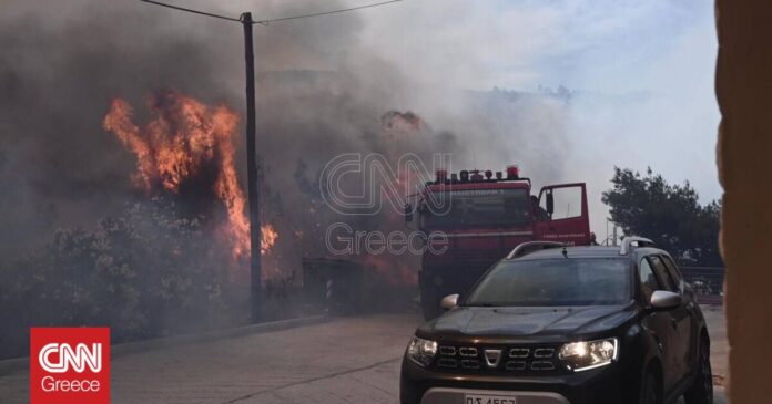Σε κατοικημένη περιοχή της Βούλας μαίνονται οι φλόγες όπου επιχειρούν 72 πυροσβέστες με 20 οχήματα και τρία πεζοπόρα τμήματα, ενώ από αέρος συνδράμουν έξι αεροπλάνα και τέσσερα ελικόπτερα.