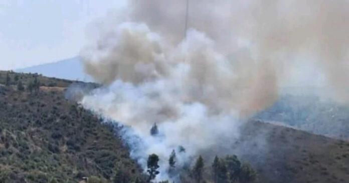 Η πυρκαγιά είναι κοντά στο πυροφυλάκιο Αχλαδούλα. Μέχρι στιγμής δεν απειλούνται σπίτια.