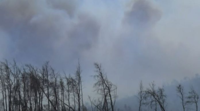 Η φωτιά ξεκίνησε από την περιοχή Κατσιμίδι και κατευθύνεται προς την κορυφή του βουνού. Στο σημείο πνέουν ισχυροί άνεμοι.