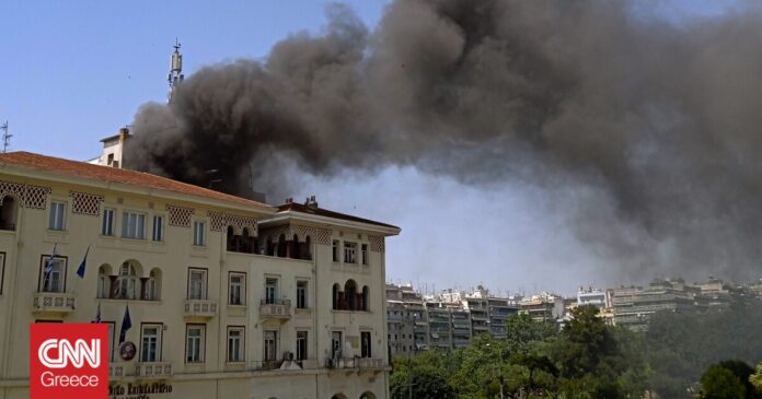 Πραγματοποιήθηκε εκκένωση του κτηρίου, από όπου και έβγαιναν πυκνοί μαύροι καπνοί.