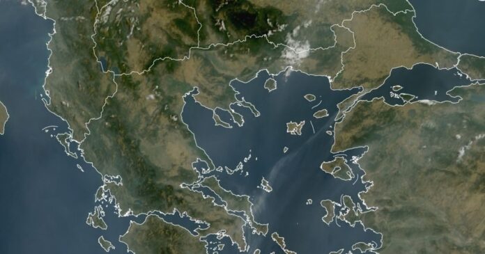 Η δορυφορική φωτογραφία δείχνει τη σημαντική διασπορά καπνού από τις φωτιές στην Τουρκία το πρωί της Τετάρτης 16 Ιουλίου. Ο καπνός άλλωστε είναι ορατός και από τις κάμερες μας στην Πεντέλη.