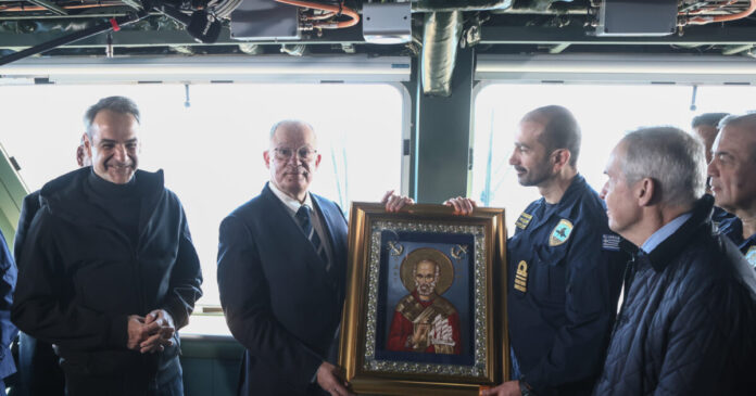 Η εν πλω τελετή υποδοχής του «Κίμων» έγινε σήμερα, Πέμπτη (15.01.226), παρουσία του Προέδρου της Δημοκρατίας Κωνσταντίνου Τασούλα, του πρωθυπουργού Κυριάκου Μητσοτάκη και του υπουργού Εθνικής Άμυνας Νίκου Δένδια. Έξι πλοία του Στόλου απέδωσαν τιμές, μαζί με το θωρηκτό «Αβέρωφ» και την τριήρη «Ολυμπιάς», σε ένα σκηνικό υψηλού συμβολισμού για την αμυντική θωράκιση της χώρας.