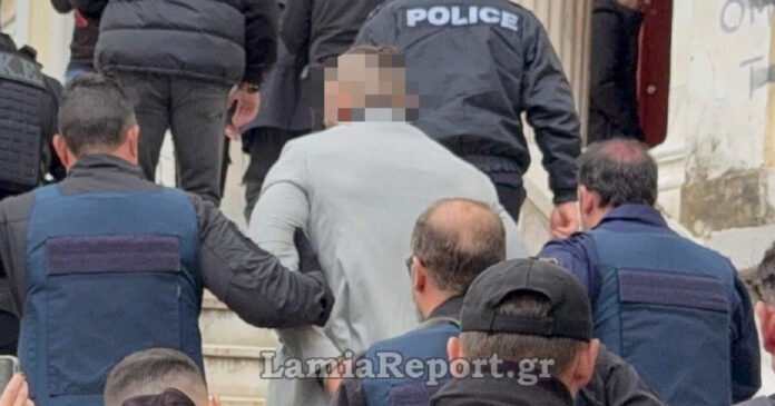 Σκυφτός και κάτω από δρακόντεια μέτρα ασφαλείας, οδηγήθηκε στο εσωτερικό του κτιρίου προκειμένου να οδηγηθεί στο γραφείο του Ανακριτή.