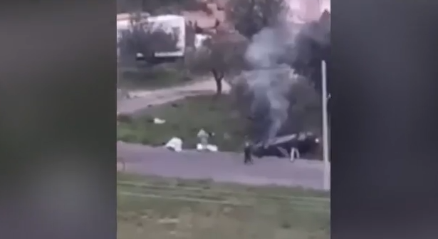 Είναι λίγα λεπτά μετά την μοιραία σύγκρουση. Από το αναποδογυρισμένο αμάξι βγαίνουν καπνοί όσο κόσμος συγκεντρώνεται στο σημείο για βοηθήσει τους επιβάτες.