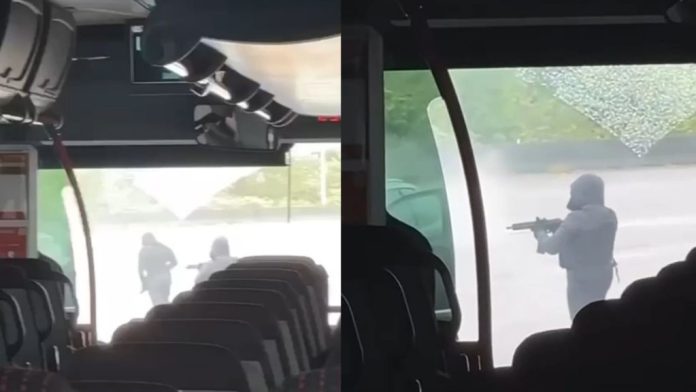 Επιβάτες λεωφορείου παρακολουθούν τρομοκρατημένοι την επίθεση. Πέφτουν κάτω για να προστατευτούν από τις σφαίρες.