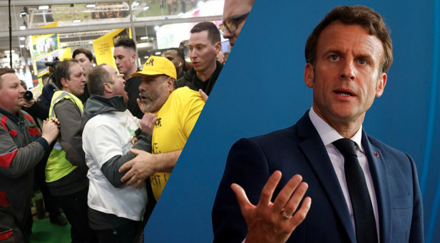 Εν μέσω αποδοκιμασιών, ο Εμανουέλ Μακρόν εγκαινίασε την έκθεση και συνομίλησε με τους διαδηλωτές.