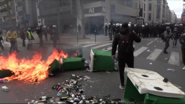 Τα σοβαρά επεισόδια στη γαλλική πρωτεύουσα, ξέσπασαν στη διάρκεια της μεγάλης πορείας των συνδικάτων που σταμάτησε πολλές φορές εξαιτίας των συμπλοκών μεταξύ του «Μαύρου Μπλοκ» και της αστυνομίας.