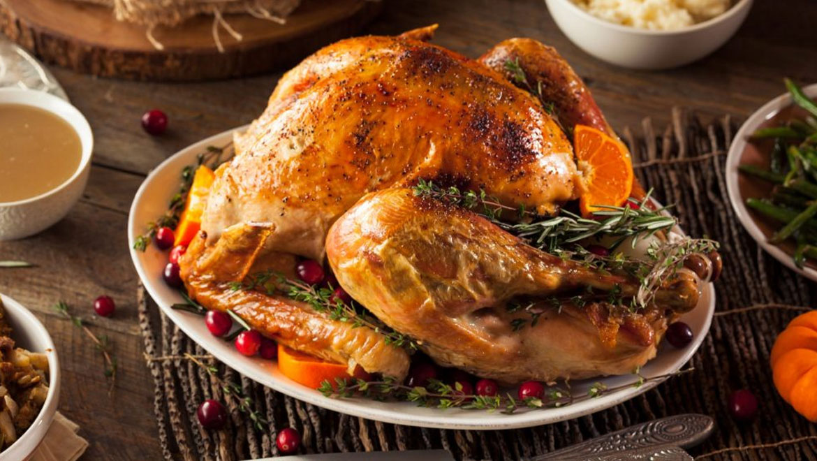 Χρησιμοποιούμε θερμόμετρο ή σουβλί στο μπούτι. Αν οι χυμοί είναι διάφανοι, η γαλοπούλα είναι έτοιμη. Αφήνουμε να ξεκουραστεί 20 λεπτά πριν το σερβίρισμα.