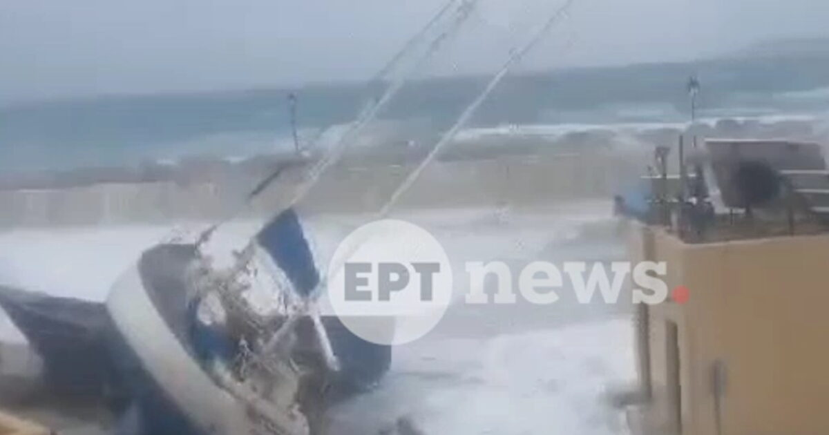 Από τα μανιασμένα κύματα βυθίστηκαν δύο βάρκες που ήταν δεμένες στο λιμάνι, ενώ και ένα αυτοκίνητο παρασύρθηκε από τα κύματα και κατέληξε στη θάλασσα.