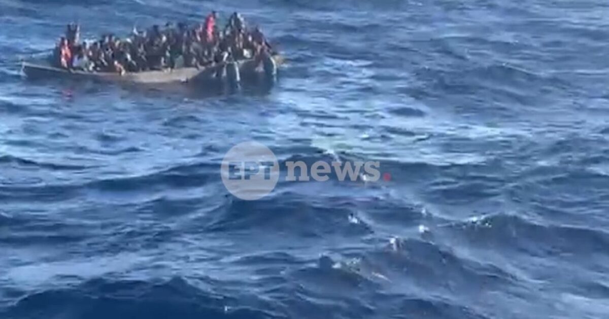 Οι μετανάστες είναι στοιβαγμένοι ο ένας σχεδόν πάνω στον άλλον στο ξύλινο σκάφος περίπου 6-7 μέτρων κοντά στη Γαύδο, ενώ τα κύματα το παρασύρουν.