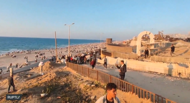 Εν μέσω πυρών, χιλιάδες Παλαιστίνιοι άμαχοι προσπαθούν να πάρουν λίγα τρόφιμα, σε σημείο διανομής, στην πόλη της Γάζας.