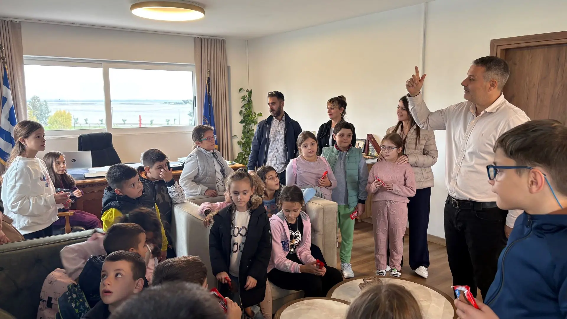 Στο Δημαρχείο της Ιερής Πόλης Μεσολογγίου υποδεχθήκαμε δεκάδες μαθητές και μαθήτριες του Δημοτικού Σχολείου Γουριάς, οι οποίοι έφεραν μαζί τους ένα κύμα χαράς και γέλιου, σήμερα Πέμπτη, 16 Οκτωβρίου 2025. Τα μικρά παιδιά, συνοδευόμενα από την υποδιευθύντρια κα Ιωάννα Καρακίτσιου και το εκπαιδευτικό προσωπικό του σχολείου, επισκέφθηκαν το γραφείο του Δημάρχου, Σπύρου Διαμαντόπουλου.