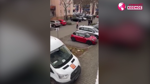Μανχάιμ, Γερμανία. Οι αστυνομικοί έχουν ακινητοποιήσει ένας Τούρκο που κρατάει μαχαίρι.