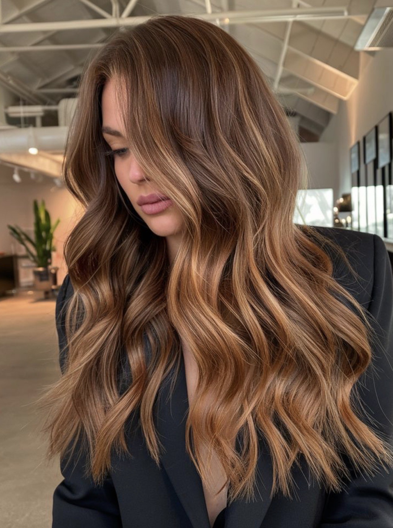 Καραμελέ ανταύγειες που δίνουν διάσταση και φυσικό αποτέλεσμα.