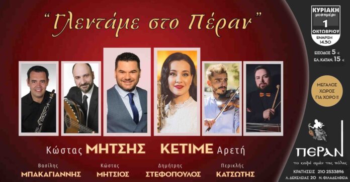 Ο εξαιρετικός δημοτικός ερμηνευτής Κώστας Μήτσης θα συμπράξει καλλιτεχνικά με τη σπουδαία και αγαπημένη μας ερμηνεύτρια Αρετή Κετιμέ – σε ένα παραδοσιακό γλέντι, την Κυριακή 1η Οκτωβρίου το μεσημέρι και ώρα 14.30, στο ΠΕΡΑΝ το καφέ αμάν της πόλης.