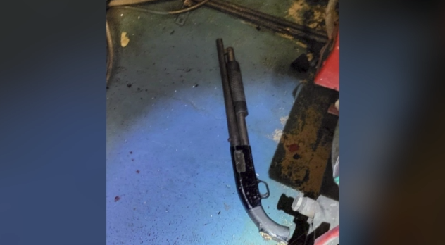 Η κυνηγετική καραμπίνα που βρέθηκε δίπλα στον δράστη στο πάρκινγκ, όπως φαίνεται στην φωτογραφία, το κοντάκι της είναι κομμένο με πριόνι ή με κάποιο άλλο αντικείμενο.