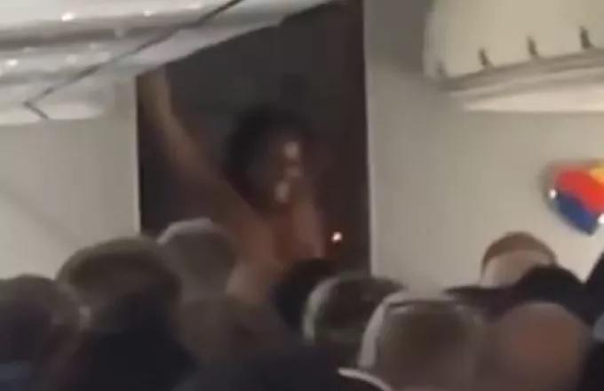 «Σίγουρα έχει πάρει ναρκωτικά» ακούγεται να λέει μία νεαρή επιβάτης της πτήσης που κατέγραφε με το κινητό της την σκηνή.