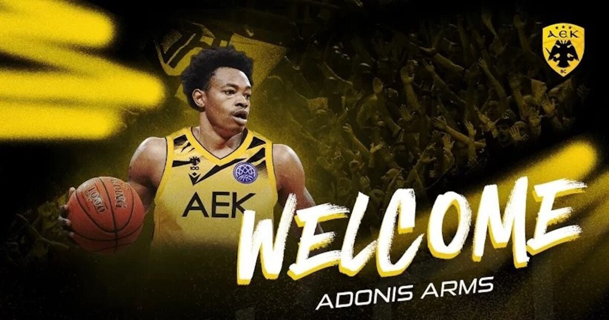 «Η ΑΕΚ BC ανακοινώνει, ότι συμφώνησε με τον Αντόνις Αρμς (Adonis Arms, 27 χρ., 1 μ.98).