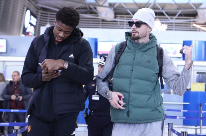 Ντίνος Μήτογλου και Αλεξάντερ Μπαλτσερόφσκι, ντυμένοι στα… ζεστά στο “Ελ. Βενιζέλος”. (intime sports)