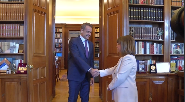 Αυτή τη φορά Κυριάκος Μητσοτάκης και Κατερίνα Σακελλαροπούλου δεν συναντήθηκαν στα πλαίσια της καθιερωμένης μηνιαίας συνάντησή τους, αλλά για να ευχαριστήσει ο πρωθυπουργός την πρώτη γυναίκα Πρόεδρο της Δημοκρατίας για τη συνεργασία που είχαν στη πενταετή θητεία της στο ανώτατο πολιτειακό αξίωμα.
