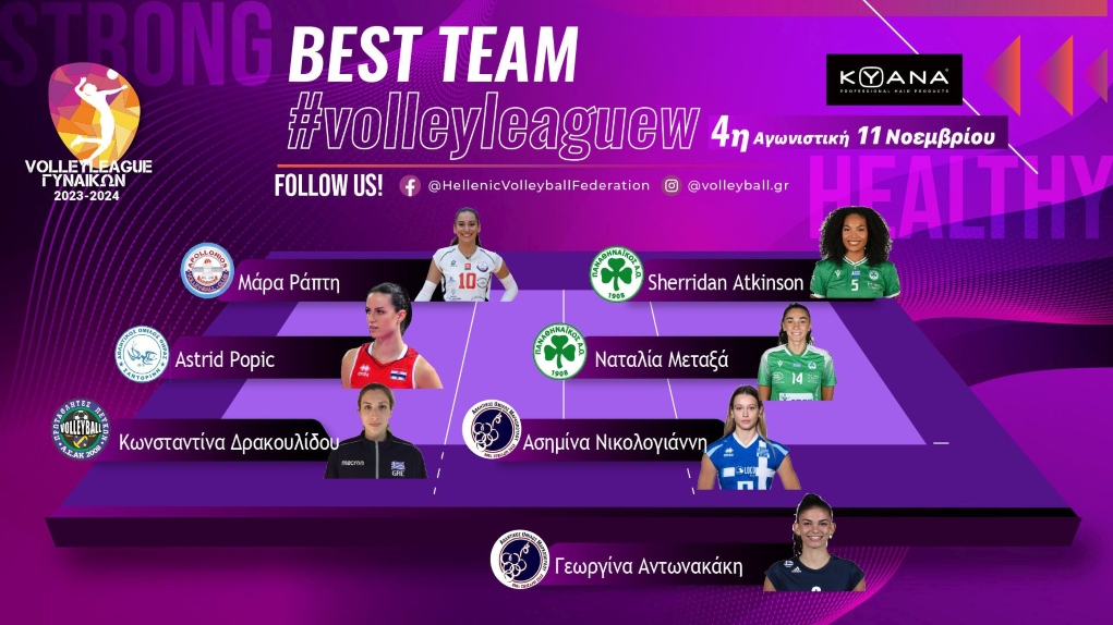 Η Αμερικανίδα διαγώνια του Παναθηναϊκού αναδείχθηκε πολυτιμότερη αθλήτρια της 4ης “στροφής” του πρωταθλήματος της Volley League Γυναικών.