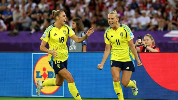 Οι Σουηδέζες δημιούργησαν ιδανικές συνθήκες με το “καλημέρα”, αφού προηγήθηκαν μόλις στο 2ο λεπτό με την Ασλάνι. Η Αγγλία έμοιαζε μουδιασμένη και λίγο έλειψε να δεχθεί και δεύτερο γκολ τρία λεπτά αργότερα, αλλά η σέντερ μπακ Γουίλιαμσον σταμάτησε την Μπλακστένιους. Οι Αγγλίδες έχασαν κι αυτές ευκαιρία στο 6΄, σε ένα τρομερό ξεκίνημα στο παιχνίδι. Οι Σκανδιναβές ευτύχησαν να διπλασιάσουν αρκετά νωρίς τα τέρματά του, με την Μπλακστένιους στο 25΄ να κάνει το 2-0 και να θέτει τις βάσεις για τη νίκη και την πρόκριση. Η Σουηδία αμύνθηκε εξαιρετικά για μεγάλο διάστημα του αγώνα, αλλά οι Αγγλίδες δεν είχαν πει την τελευταία τους λέξη και με ένα εκπληκτικό ξέσπασμα στο φινάλε ισοφάρισαν μέσα σε ένα δίλεπτο, με την Μπρόουντζ στο 79΄ και την Αγκιεμάνγκ στο 81΄. Το παιχνίδι οδηγήθηκε στην παράταση και στη συνέχεια στα πέναλτι. Εκεί και δύο ομάδες ήταν τρομερά άστοχες, αλλά οι Αγγλίδες ήταν αυτές που κατάφεραν να επικρατήσουν με 3-2, αφού πρώτα είδαν τις αντιπάλους τους να σπαταλούν μοναδικές ευκαιρίες να τελειώσουν τη διαδικασία. Στα ημιτελικά, η Αγγλία θα αντιμετωπίσει την Ιταλία.