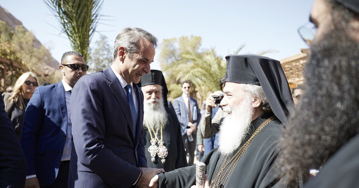«Η Ελλάδα παρούσα και αρωγός σας, στεκόμαστε πάντα δίπλα σας για να διαφυλάξουμε στην αιωνιότητα το ιδιαίτερο και ξεχωριστό καθεστώς που μας κληροδοτήθηκε από τους προγόνους μας» είπε μεταξύ άλλων ο Κυριάκος Μητσοτάκης, στην τελετή ενθρόνισης του νέου Αρχιεπισκόπου Σινά, Φαράν και Ραϊθώ και Ηγουμένου της Ιεράς Μονής Αγίας Αικατερίνης Όρους Σινά, κ. Συμεών.