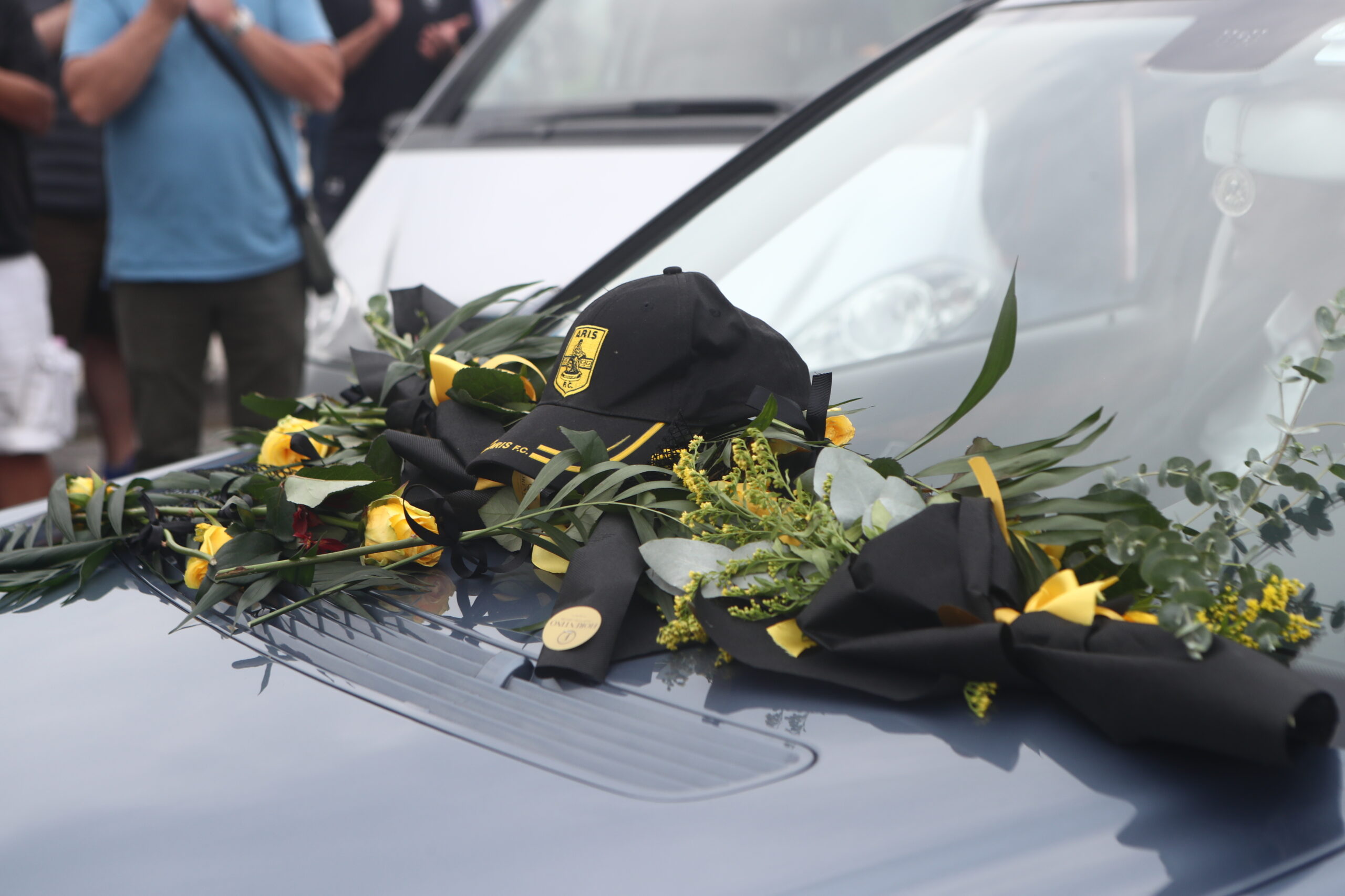 Ωστόσο, τα οικεία πρόσωπα του “Ξανθού” πλέον δεν είναι μάρτυρες σε ένα απλό προσκύνημα του αγαπημένου τους, αλλά λένε το τελευταίο αντίο σε εκείνον στην τελετή που λαμβάνει χώρα αυτή την στιγμή στην Θέρμη.