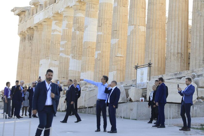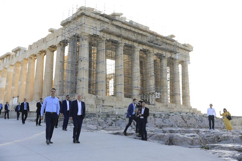 Ο πρωθυπουργός Κυριάκος Μητσοτάκης και ο καγκελάριος της Ομοσπονδιακής Δημοκρατίας της Γερμανίας Όλαφ Σολτς επισκέφτηκαν το πρωί τον αρχαιολογικό χώρο της Ακρόπολης.