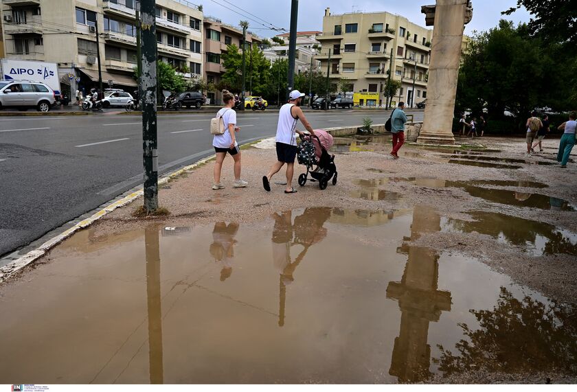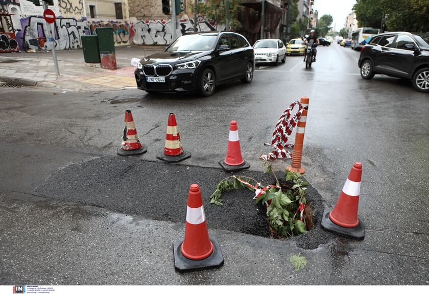 Σοβαρά προβλήματα δημιούργησαν οι σφοδρές καταιγίδες στους δρόμους του κέντρου της Αθήνας όπου σημειώθηκαν καθιζήσεις στο οδόστρωμα.
