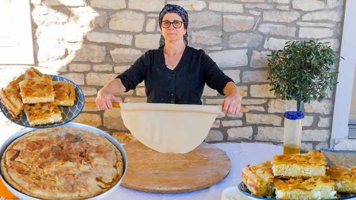 Στο χωριό Λεπενού της Αιτωλοακαρνανίας, η φιλόξενη κυρία Μαρία μας υποδέχτηκε στο σπίτι της και μας ταξίδεψε πίσω στο χρόνο, φτιάχνοντας μια παραδοσιακή τραχανόπιτα, όπως ακριβώς την έφτιαχναν οι γιαγιάδες μας.