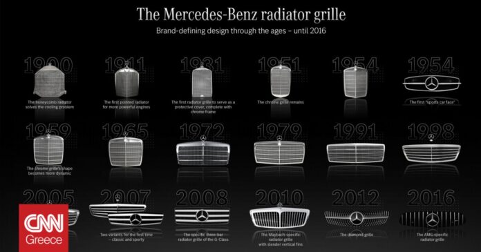 Χαρακτηριστικό παράδειγμα η μάσκα των μοντέλων της Mercedes, η οποία έκανε την εμφάνισή της πριν από 122 ολόκληρα χρόνια στην 36 PS. Τότε ήταν πρακτικά ένα ψυγείο που εξασφάλιζε την ψύξη του κινητήρα, ενώ στην πορεία, όπως μπορείτε να δείτε, ναι μεν άλλαξε πολλές φορές αλλά παρέμεινε πάντα χαρακτηριστική.