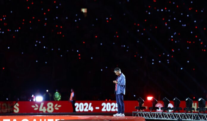 Υπάρχουν εκατοντάδες καρέ που θα μείνουν αξέχαστα από τη φιέστα του Ολυμπιακού για την κατάκτηση του πρωταθλήματος, όμως ένα ξεχωρίζει. Ο Χοσέ Λουίς Μεντιλίμπαρ, ένας προπονητής που έχει κατακτήσει δύο ευρωπαϊκούς τίτλους και έχει προπονήσει συλλόγους όπως η Σεβίλλη, η Αθλέτικ Μπιλμπάο και ο Ολυμπιακός, έγινε για πρώτη φορά πρωταθλητής. Ο φωτογραφικός φακός τον “έπιασε” να κοιτάζει το μετάλλιο σε μία μοναδική στιγμή που άργησε, αλλά έγινε πραγματικότητα για τον 64χρονο.