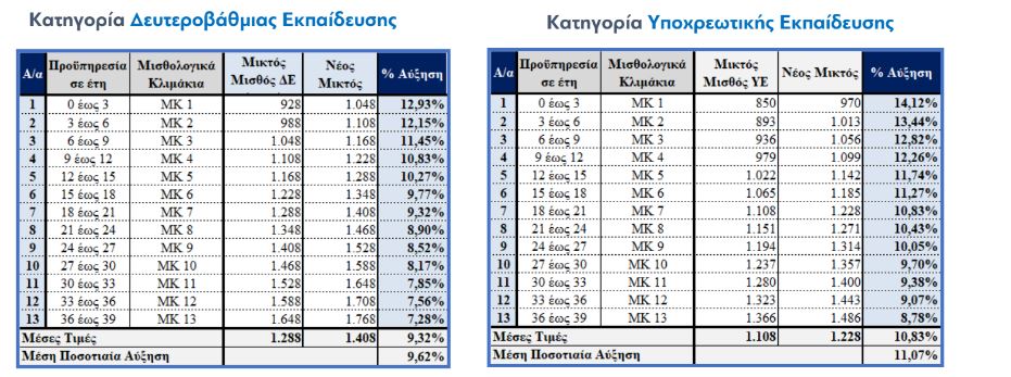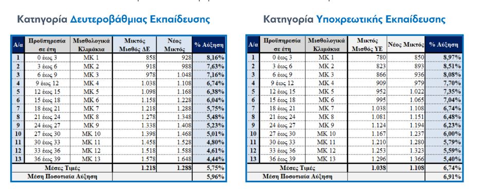 Ενιαίο Μισθολόγιο & ποσοστιαία αύξηση (3) – χωρίς θέση ευθύνης