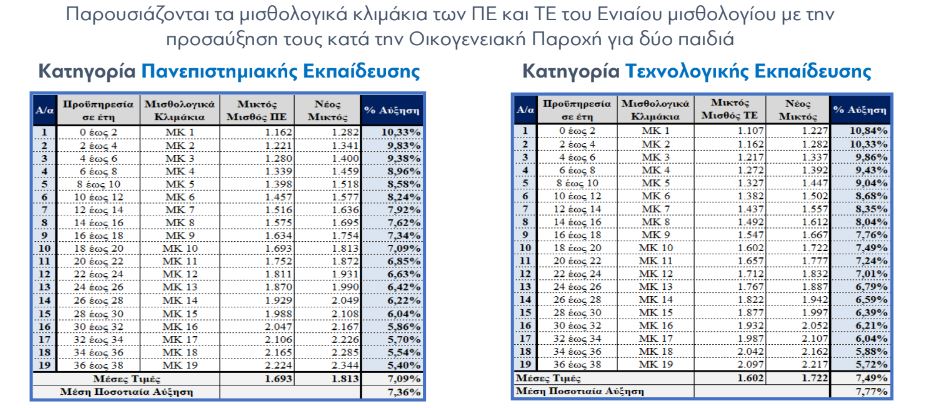 Ενιαίο Μισθολόγιο & ποσοστιαία αύξηση – Υπάλληλοι ΠΕ και ΤΕ με δύο παιδιά