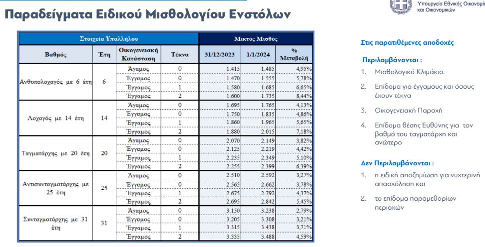 Οι αυξήσεις που θα εφαρμοστούν από 1/1/2024 στο Δημόσιο κατανέμονται ως εξής: