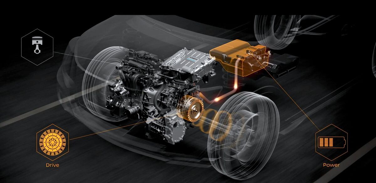 Το e-Power αποτελείται από έναν ηλεκτροκινητήρα 140 kW, από μια μπαταρία και από έναν τρικύλινδρο, turbo κινητήρα βενζίνης 1.500 κυβικών με μεταβλητή σχέση συμπίεσης και απόδοση 156 ίππων. Ο τελευταίος, λειτουργώντας πάντα κάτω από σχεδόν ιδανικές συνθήκες παρουσιάζοντας ιδιαίτερα μειωμένη κατανάλωση και ανάλογα χαμηλές εκπομπές ρύπων, παράγει ηλεκτρική ενέργεια και ανάλογα με τις συνθήκες είτε τροφοδοτεί τη μπαταρία, είτε τον ηλεκτροκινητήρα είτε και τα δύο.
