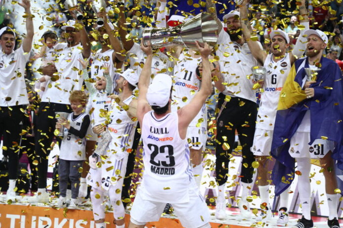 Σε ένα τελικό που έσπασε καρδιές και με τον Σέρχιο Γιουλ να βάζει ασύλληπτο καλάθι, 3,2” για το τέλος, οι “μερένγκες” επικράτησαν του Ολυμπιακού με 79-78 και κατέκτησαν το 11ο τρόπαιο της ιστορίας τους. Η ομάδα του Τσους Ματέο βρισκόταν στο -4 (78-74) μόλις 50 δευτερόλεπτα πριν το φινάλε. Ωστόσο η ανατροπή και η νίκη ήρθαν, με άπαντες να ξεσπούν σε έντονους πανηγυρισμούς στο παρκέ της “Zalgirio Arena“, πριν, κατά τη διάρκεια και μετά την απονομή.//Α.
