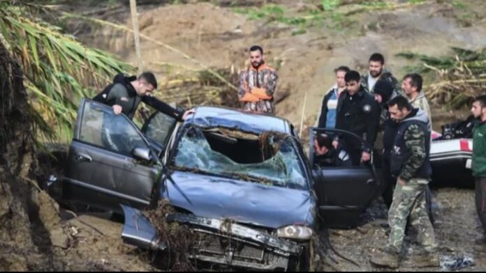 Το ζευγάρι προσπάθησε να διασχίσει εν μέσω νεροποντής τη γέφυρα για να φτάσει στο χωριό του, αλλά παρασύρθηκε από τα ορμητικά νερά του χειμάρρου που υπερχείλισε με αποτέλεσμα το αυτοκίνητο να σφηνώσει στα κάγκελα και στη συνέχεια να χαθεί μέσα στα λασπόνερα.