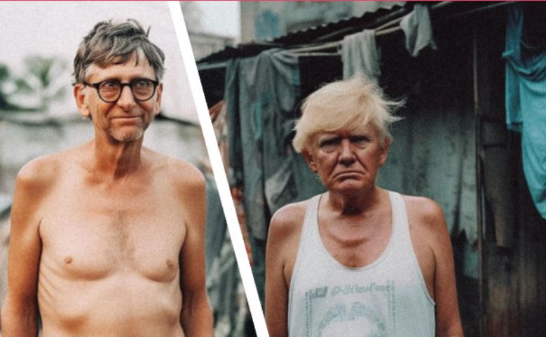 Με τη βοήθεια της τεχνητής νοημοσύνης, έφτιαξε φωτογραφίες με τους μεγιστάνες να φαίνονται ρυπαροί και αξιολύπητοι με κουρελιασμένα ρούχα σε φτωχογειτονιές της Ινδίας.