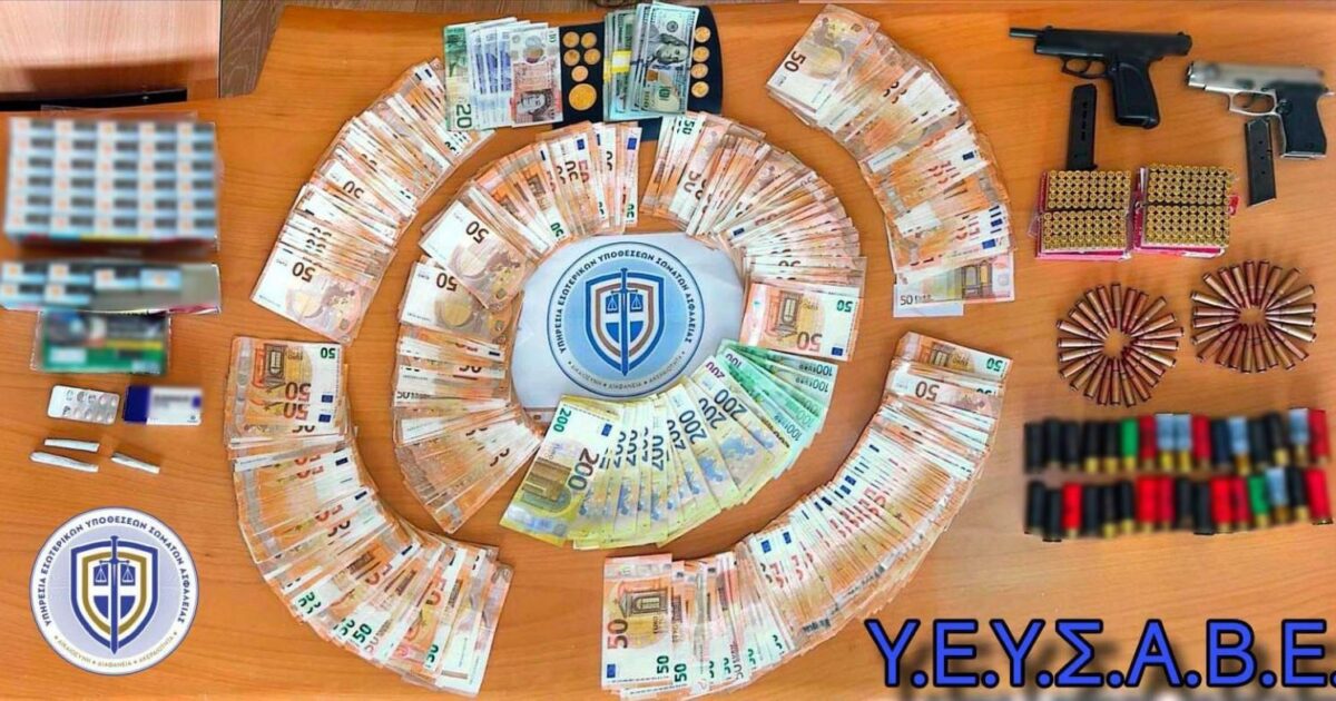 Κατασχέθηκαν ακόμη δύο πιστόλια, ναρκωτικά χάπια και κινητά τηλέφωνα ενώ στη δικογραφία περιλαμβάνονται 404 άτομα εκ των οποίων οι 92 έχουν ταυτοποιηθεί.