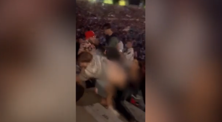 Όλα ξεκίνησαν όταν ο σύντροφος της κοπέλας έριξε κατά λάθος το ποτό του σε έναν άλλο θεατή, ο οποίος έφυγε οργισμένος, για να επιστρέψει μισή ώρα αργότερα φωνάζοντας.