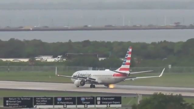 Βίντεο δείχνει το αεροσκάφος ενώ κινείται στον διάδρομο απογείωσης και την ώρα που αυξάνει ταχύτητα για να φύγει, σκάει ένα λάστιχο με αποτέλεσμα να πάρει φωτιά.
